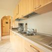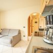 Soggiorno con cucina attrezzata e divano letto matrimoniale