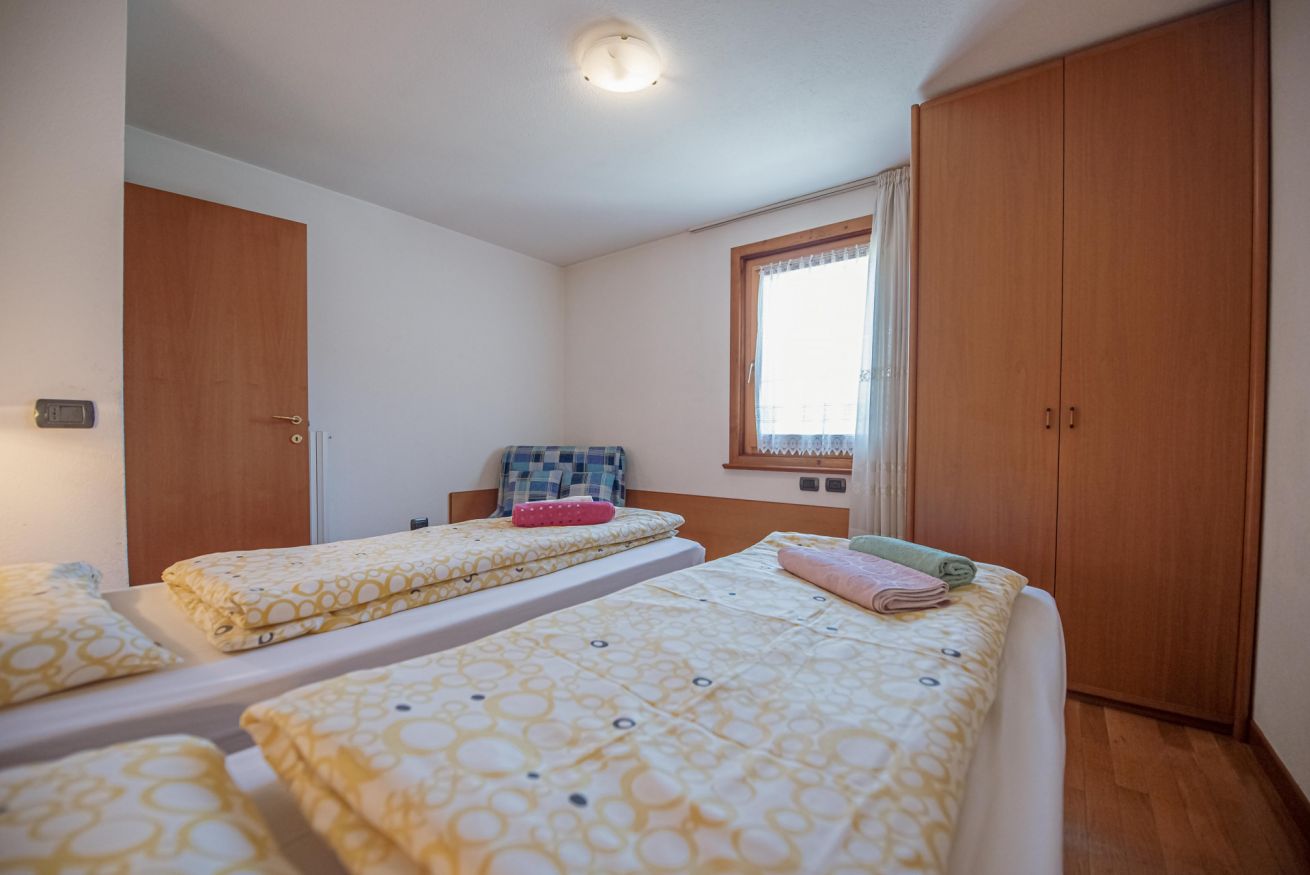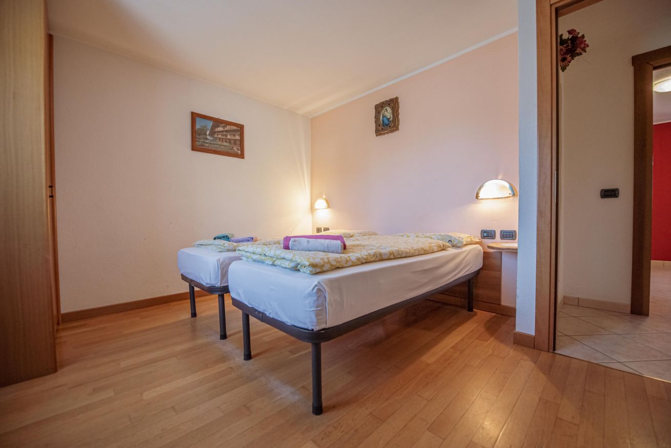 Questo luminoso e accogliente quadrilocale è la scelta ideale per famiglie o gruppi di amici. Composto da tre camere da letto – una singola, una tripla e una matrimoniale – e due bagni con doccia, l'appartamento offre ampi spazi per il massimo comfort. La zona giorno è perfetta per rilassarsi dopo una giornata all'aria aperta e, dal balcone, potrai godere di una vista mozzafiato sulle montagne circostanti. La cucina, ben attrezzata con angolo cottura, ti permetterà di preparare i tuoi pasti con facilità.