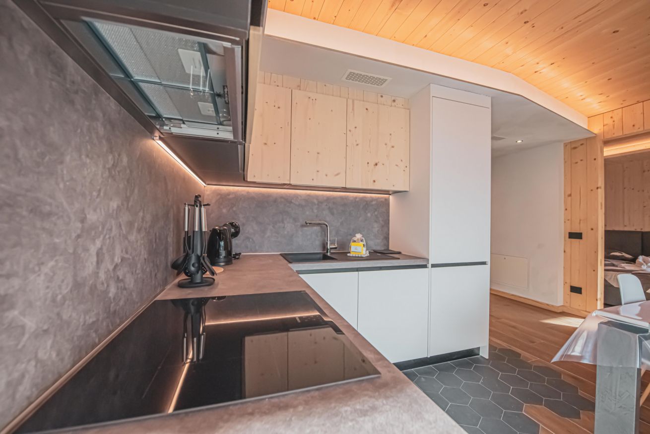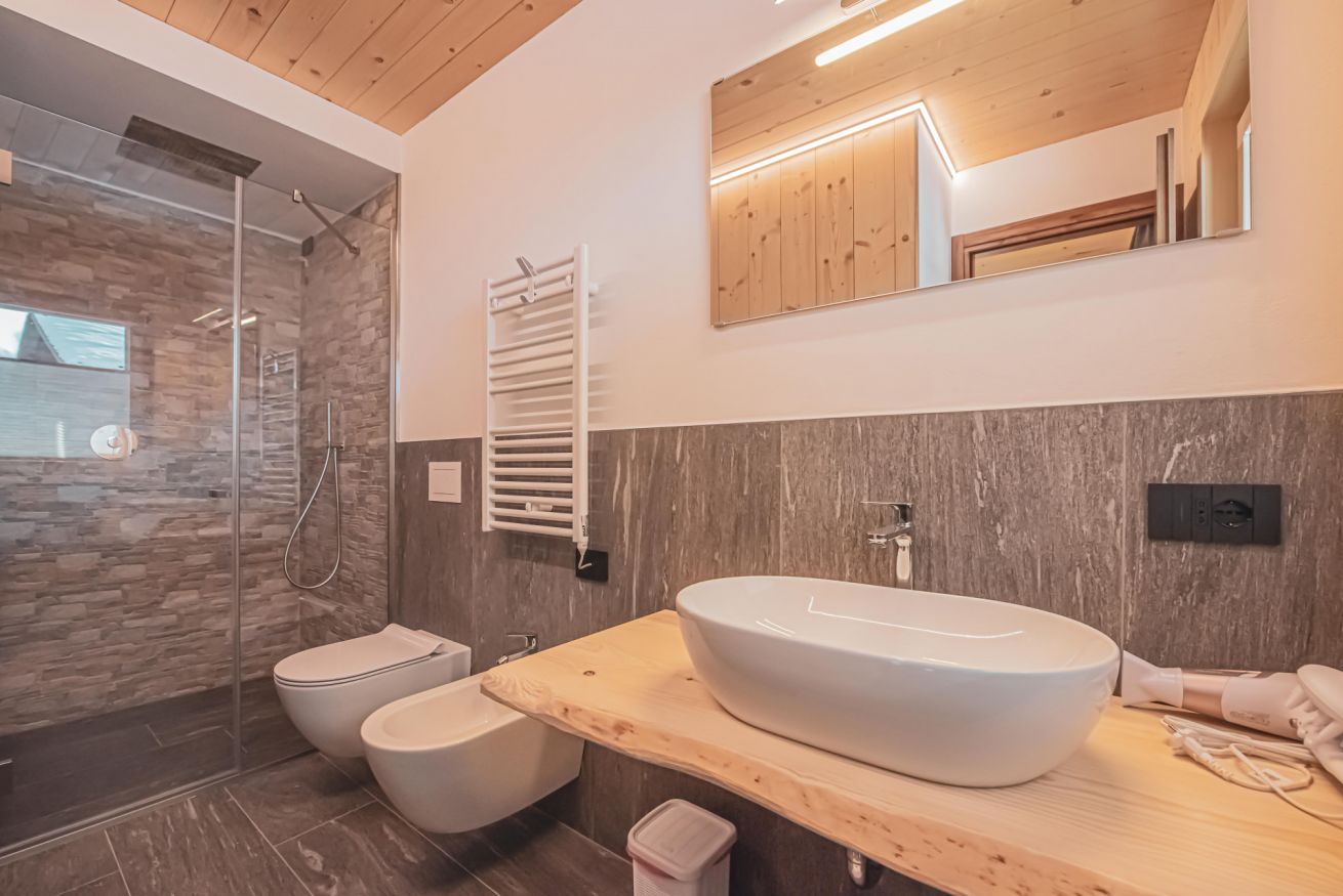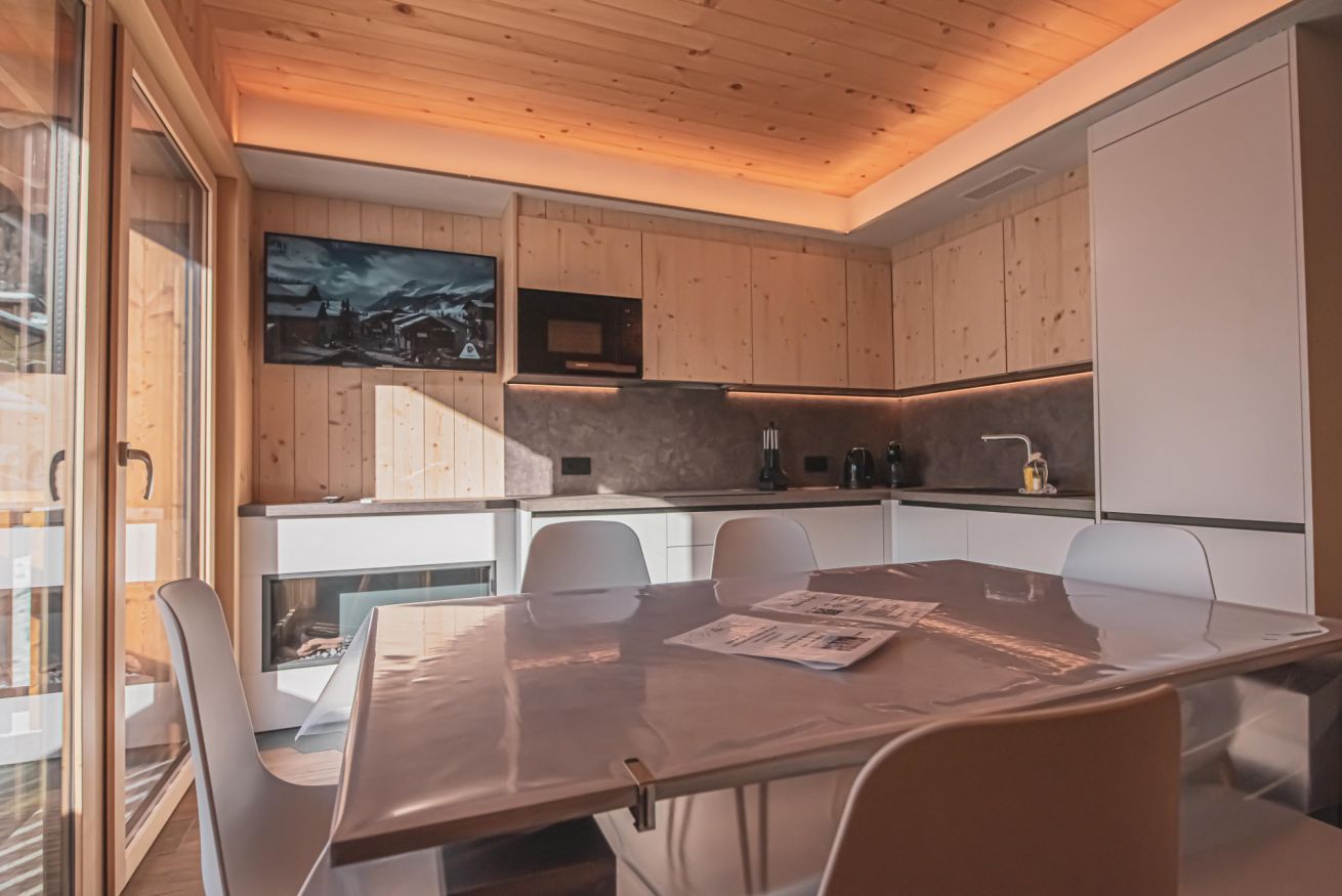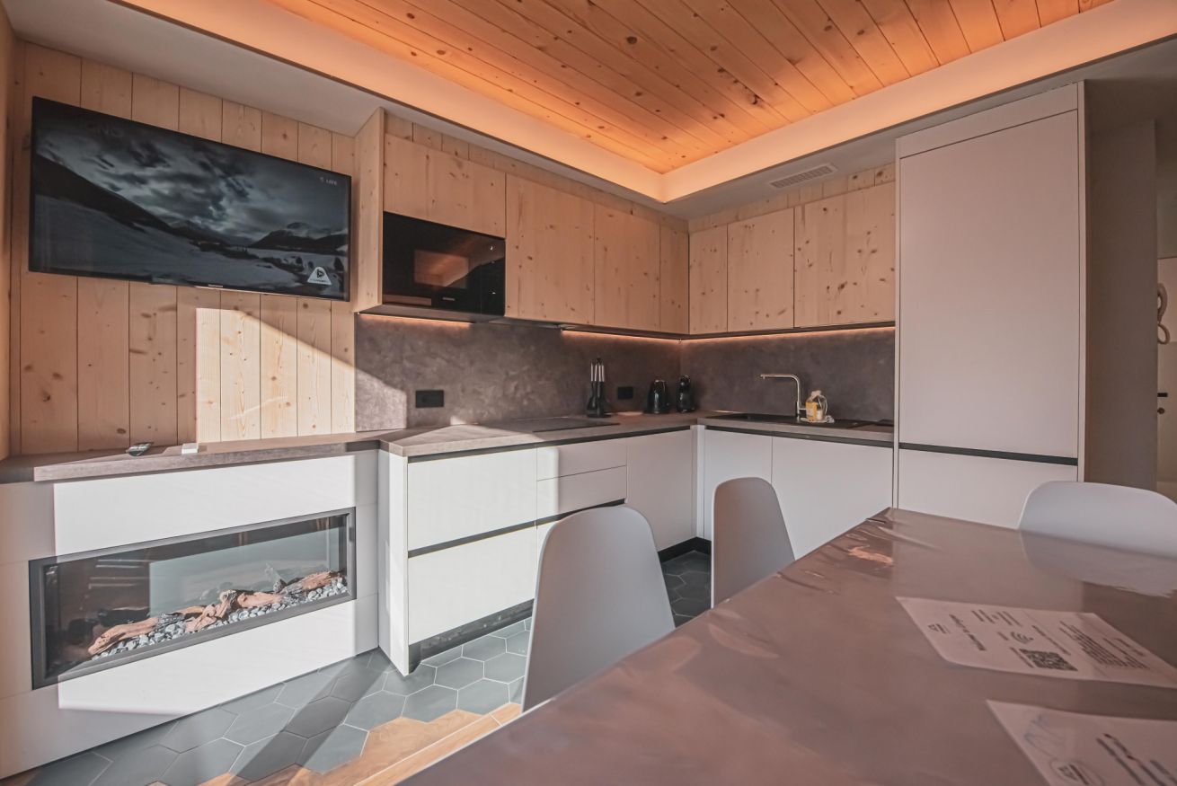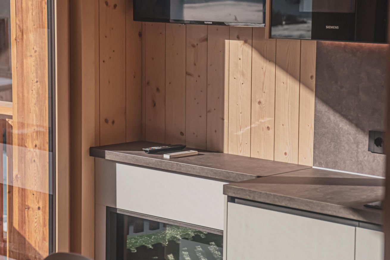 Dopo una giornata trascorsa sulle piste o lungo i sentieri alpini, potrete riporre la vostra attrezzatura nei locali riscaldati dedicati a sci e biciclette, rilassarvi all’aria aperta o gustare una cena con vista sulle montagne, approfittando del barbecue a legna messo a disposizione degli ospiti. Lo chalet offre anche parcheggio esterno gratuito, garage riscaldato e un moderno sistema di ventilazione che garantisce aria sempre fresca e salubre all’interno dell’abitazione.