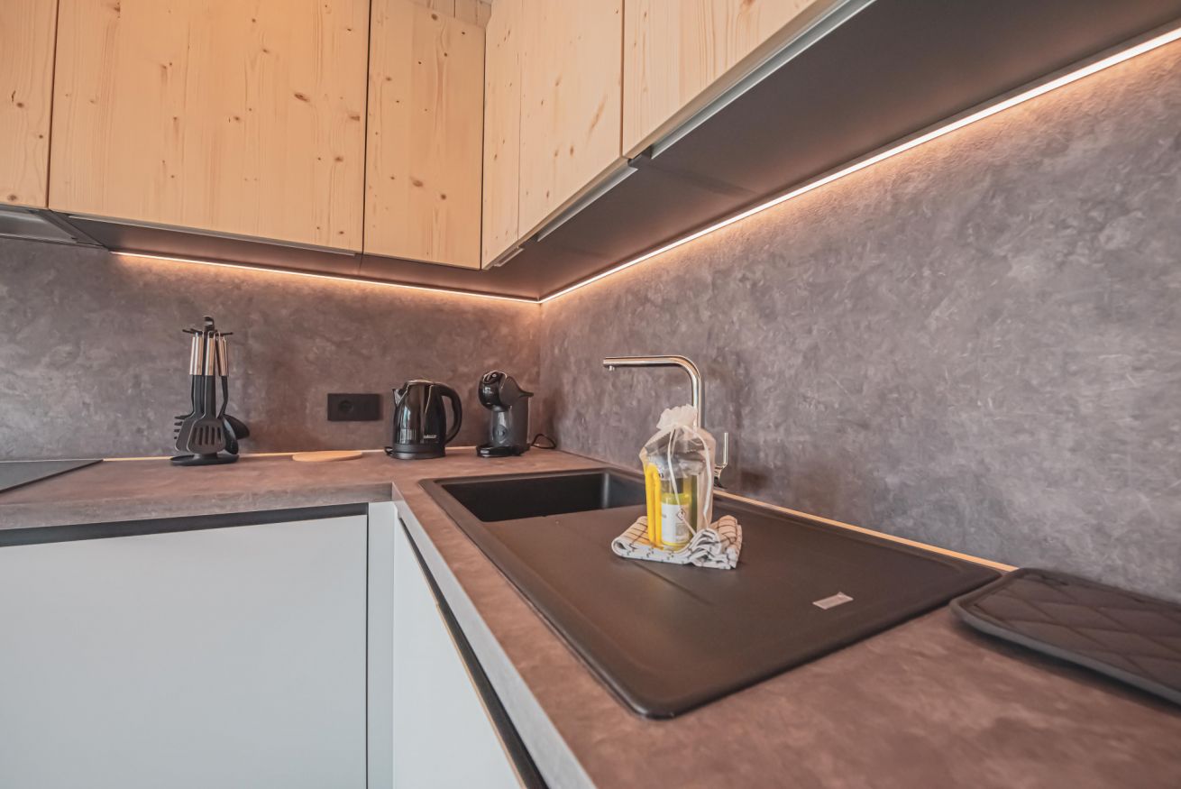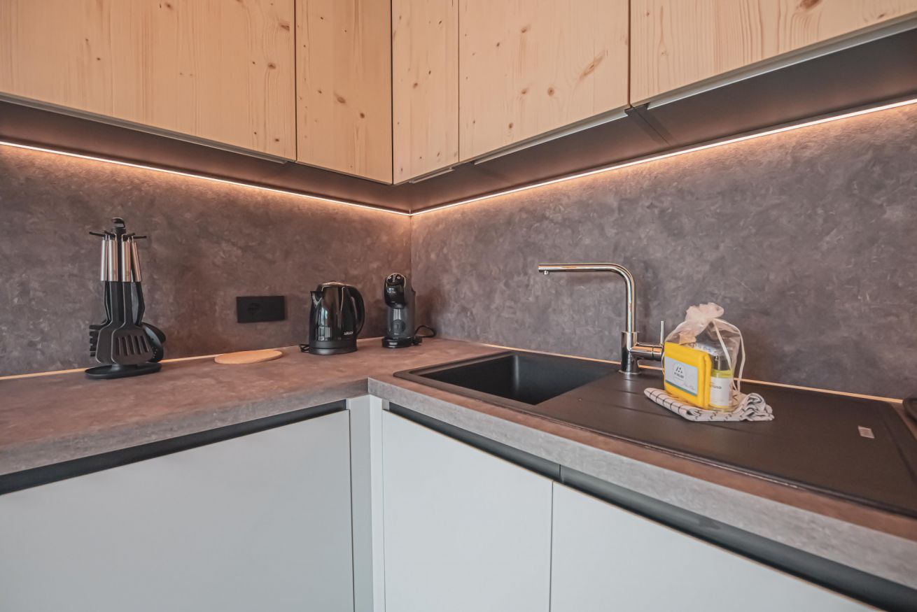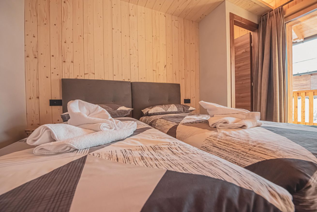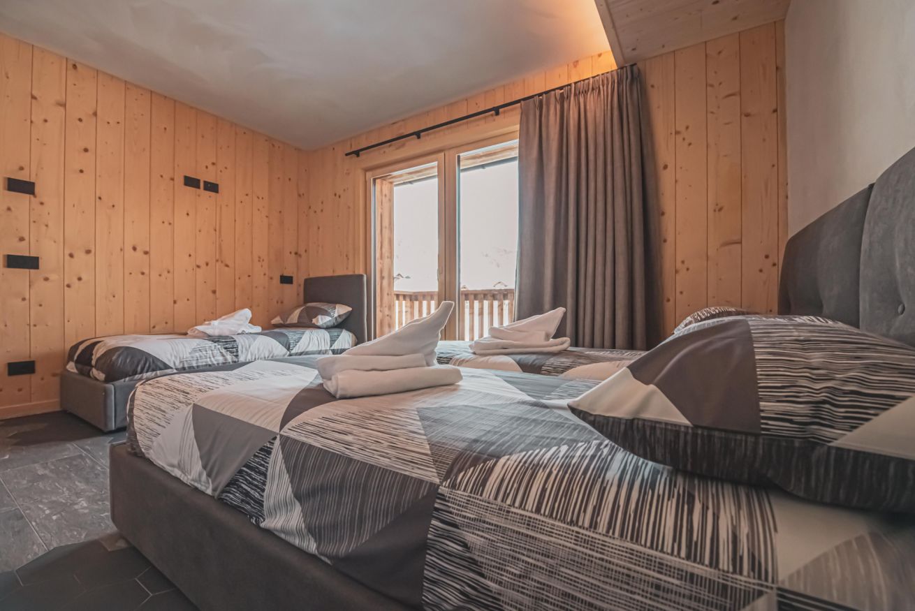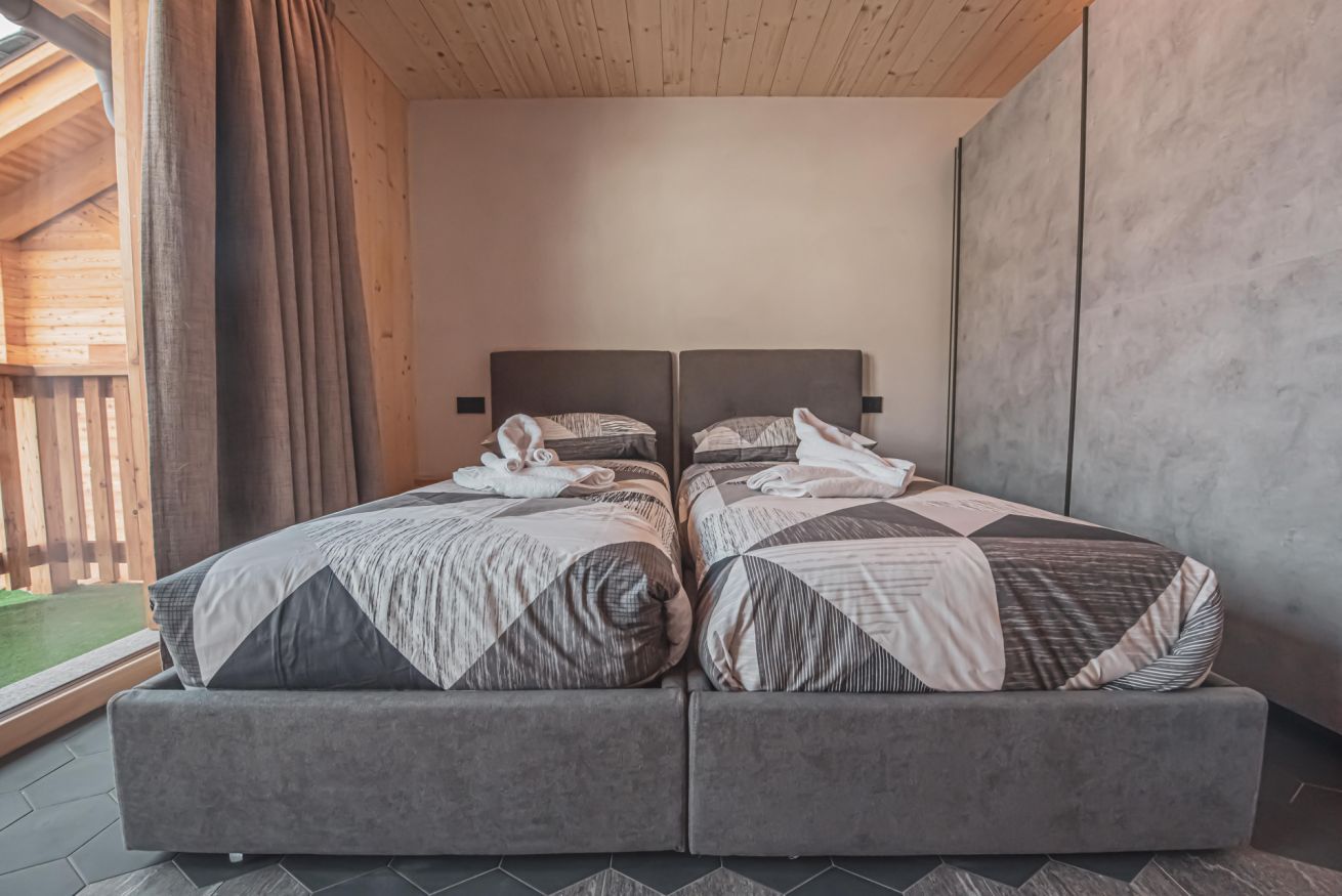 L'appartamento dispone di un ampio balcone con vista sull’esteso giardino comune, accessibile a tutti gli ospiti dello chalet, e regala panorami mozzafiato sulle montagne circostanti. L’atmosfera è calda, accogliente e autentica, ideale per una vacanza in ogni stagione.