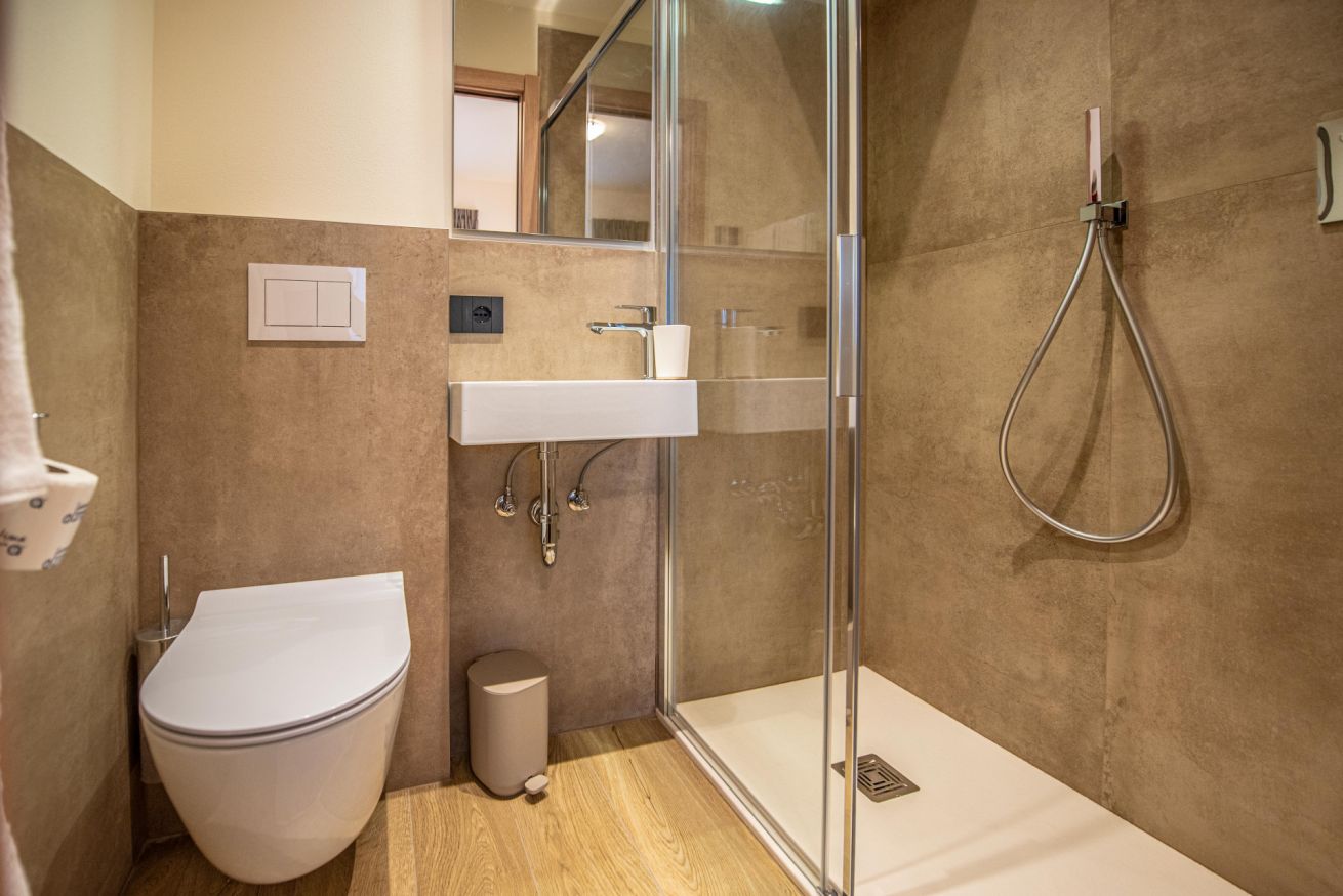 2 bagni moderni e spaziosi, entrambi dotati di doccia a sfioro, lavabo e WC – perfetti per offrire praticità e comodità anche a famiglie o gruppi.