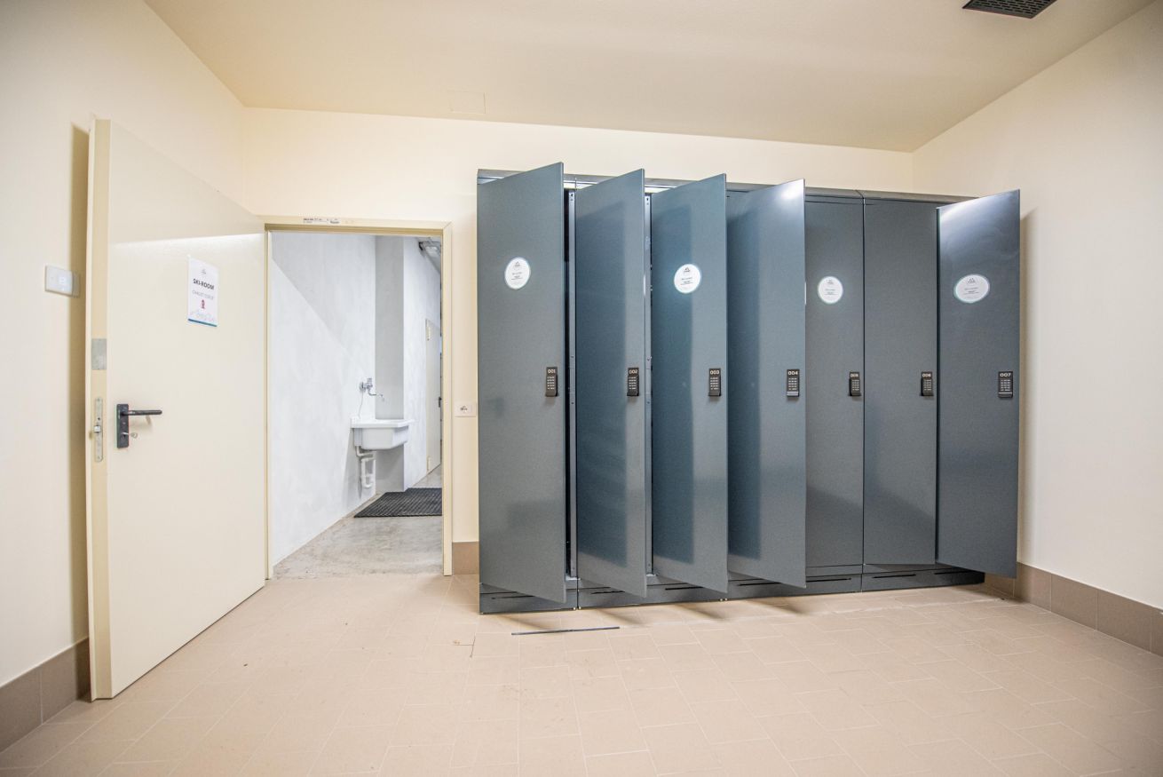 Deposito sci con armadietti riscaldati, per avere sempre l’attrezzatura asciutta e pronta all’uso.