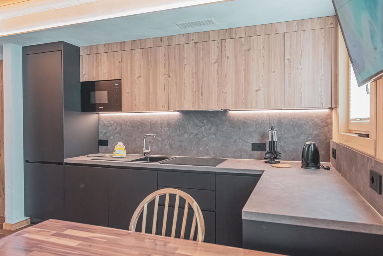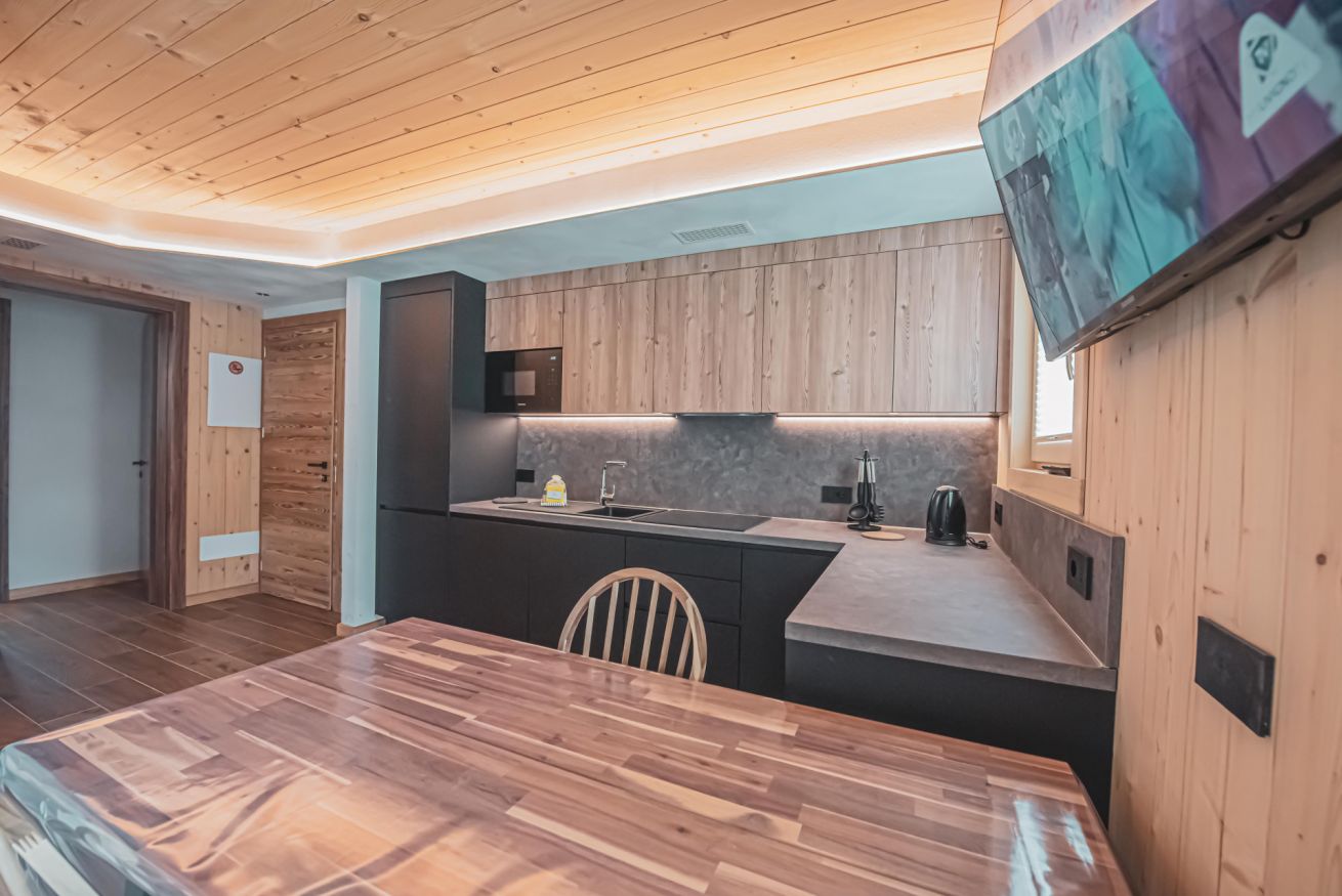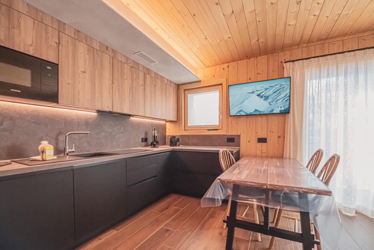 Dopo una giornata trascorsa all’aria aperta, potrai riporre sci e biciclette negli appositi depositi riscaldati, rilassarti nel giardino o preparare una cena all’aperto con il barbecue a legna a disposizione degli ospiti. Lo chalet offre inoltre parcheggio esterno gratuito, garage e un sistema di termoventilazione che garantisce sempre un clima piacevole.